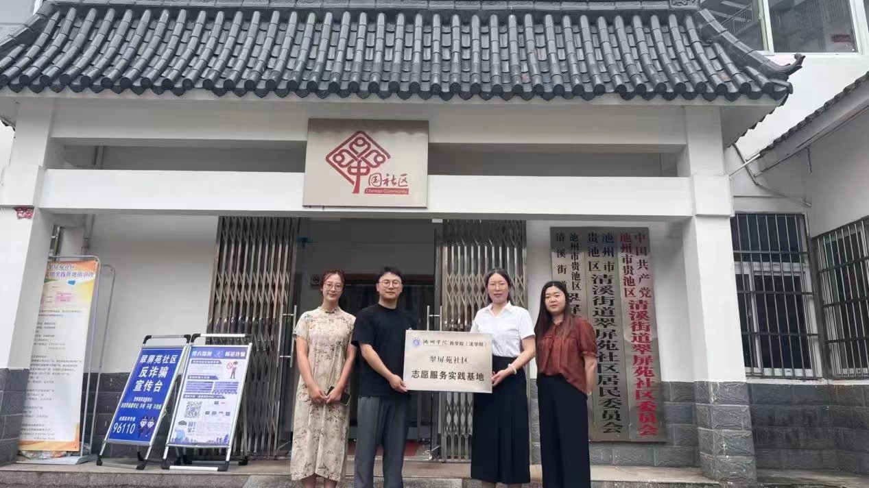 為深入學習貫徹習近平總書記關于青年工作的重要思想,深化校地合作,凝聚發展合力,助力青年成長,7月19日,胡剛老師代表池州學院商學院(法學院)與池州市翠屏苑社區簽訂共建志愿服務協議。在池州學院商學院“科普筑夢,杏暖夕陽”暨“科普筑夢,益童前行”實踐團與相關工作人員的見證下,成功舉辦了共建“大學生實踐基地”揭牌儀式。