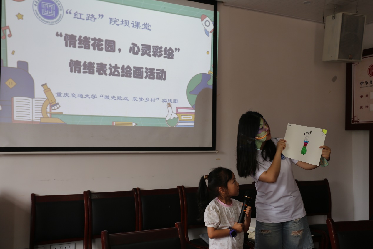 2024年7月19日,重慶交通大學經濟與管理學院“智惠田野,筑夢堰鄉”實踐服務團在重慶市云陽縣清水鄉大堰村開展了“情緒花園,心靈彩繪”情緒表達繪畫兒童心理活動,通過本次繪畫活動,讓孩子們能夠直觀地了解和表達自己的情緒,并在過程中激發他們的創造力和想象力,提升社交能力和溝通技巧。