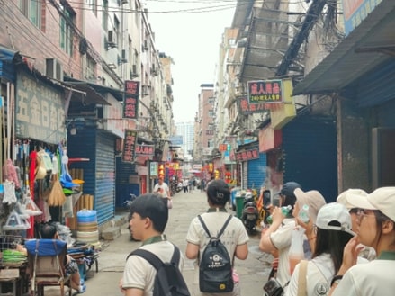 實踐隊成員在沙井村內(nèi)街巷調(diào)研隊員們穿梭在狹窄的巷弄之間,細(xì)心觀察著每一處細(xì)節(jié)。調(diào)查過程中發(fā)現(xiàn),由于歷史和管理體制等原因,沙井村存在布局結(jié)構(gòu)混亂、環(huán)境衛(wèi)生差、綠化覆蓋低、消防隱患大等問題,這些問題降低了居民的生活質(zhì)量,影響了城市的整體面貌。但大家也注意到,盡管生活條件有待改善,但沙井村居民的生活熱情依舊:主要商業(yè)街道上人群絡(luò)繹不絕,街巷深處也偶有綠意相簇。“我們每天生意還是很好的,村里來買東西的人很多,雖然消費的價格不高,但是畢竟量擺在那里嘛。”攤主王師傅談到。實踐隊員們用手中的紙筆與相機,記錄下了這些生動的場景和村中亟待解決的問題,為后續(xù)的調(diào)研和改進(jìn)工作積累了寶貴的第一手資料。