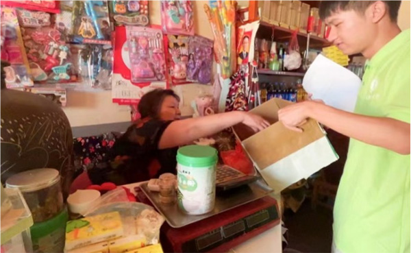 圖三:小賣部的于阿姨在參與抽獎(jiǎng)活動(dòng)