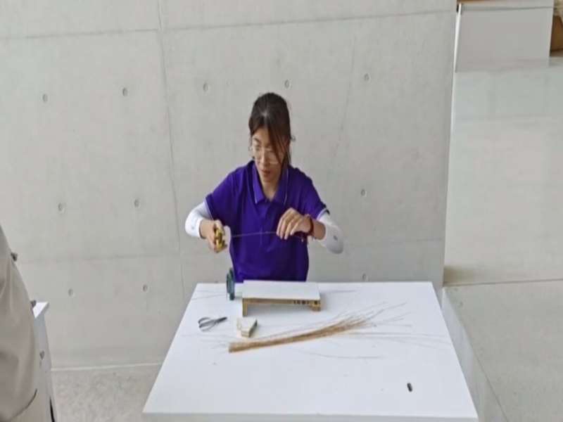 (圖為7月21日,“非遺瑰寶映古今,文房四寶繪書法”暑期社會實踐團隊負責人陳晨體驗抽絲。吳憂供圖)