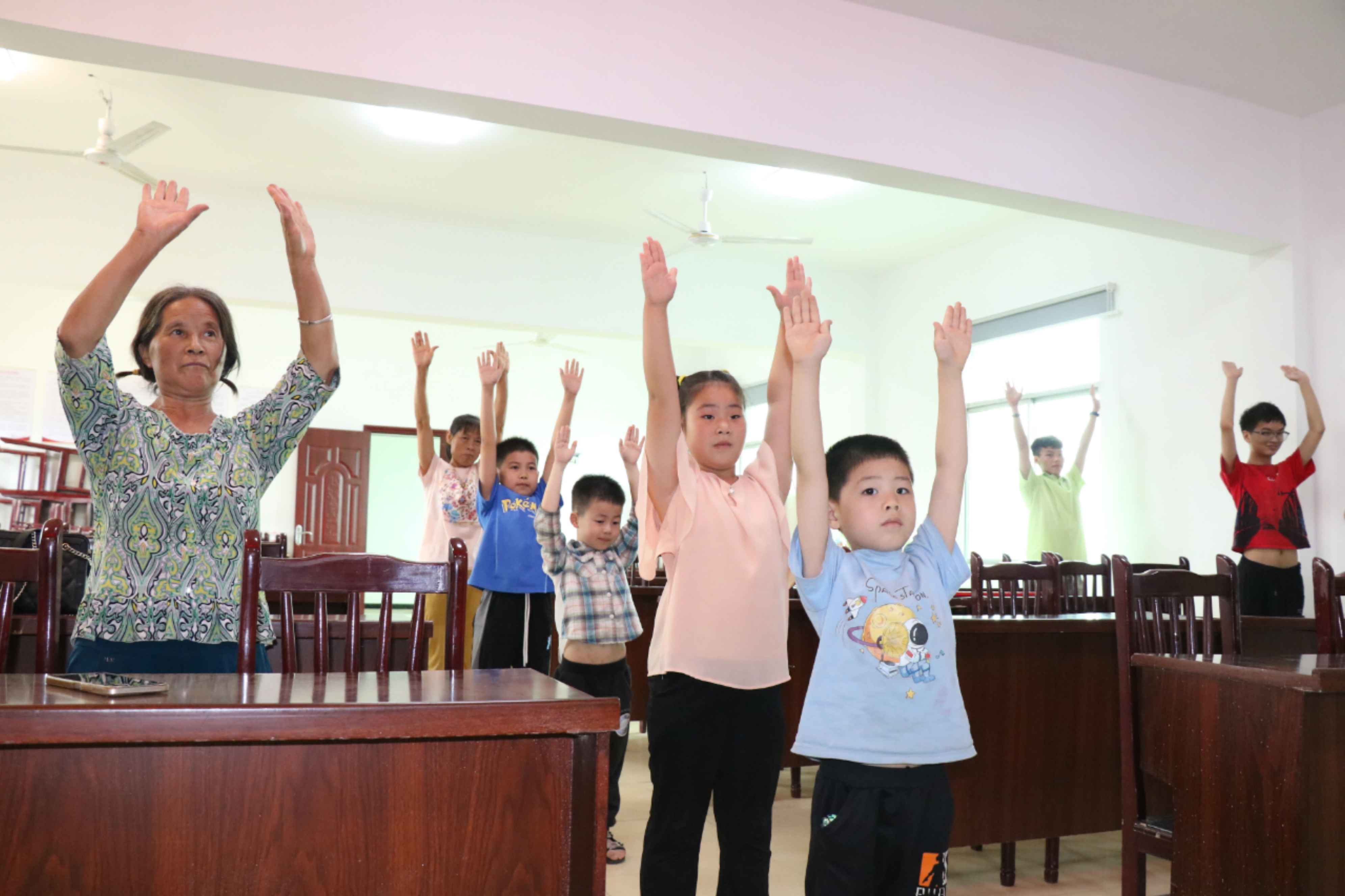 圖為小朋友和奶奶們一起學習八段錦(藍添宜供圖)
