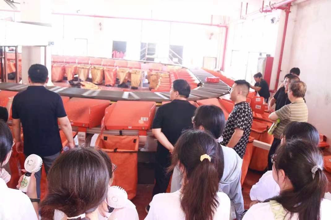 漳州市羊哥食品有限公司——物流智能的震撼體驗 隨后,實踐隊轉戰漳州市羊哥食品有限公司,這里上演著一場物流智能化的盛宴。通過“沉浸式”的參觀體驗,物流管理專業的學生們親眼目睹了智能篩選、分揀系統的高效運作,仿佛置身于未來物流的現場。這不僅是一場視覺上的沖擊,更是一次心靈的觸動,讓學子們深刻感受到科技進步對物流行業的深遠影響,也為他們未來的職業規劃提供了寶貴的參考。