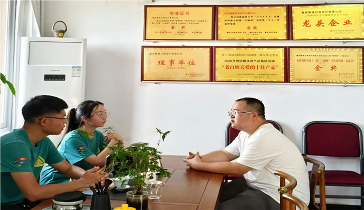 青春志愿攜手入茶鄉,大學學子助農潤茶田 再后來,實踐團前往重慶市萬州區新鄉鎮治華村茶山,開展助力鄉村振興相關實踐活動。實踐團成員通過拍攝茶山美景、探訪茶葉加工廠、深入交流茶農夢想與期望等方式,深入了解當地茶山的發展戰略與目標。隨后實踐團成員繼續進行實地調研,與當地茶莊負責人深入交流,充分了解當地的發展戰略與目標,傾聽茶莊負責人的夢想與對未來茶葉的期望,直觀地了解到茶山近十幾年的發展。茶莊負責人表示,希望通過自己的努力,不斷提升茶葉的品質和產量,讓更多的人品嘗到萬州茶葉的獨特風味。