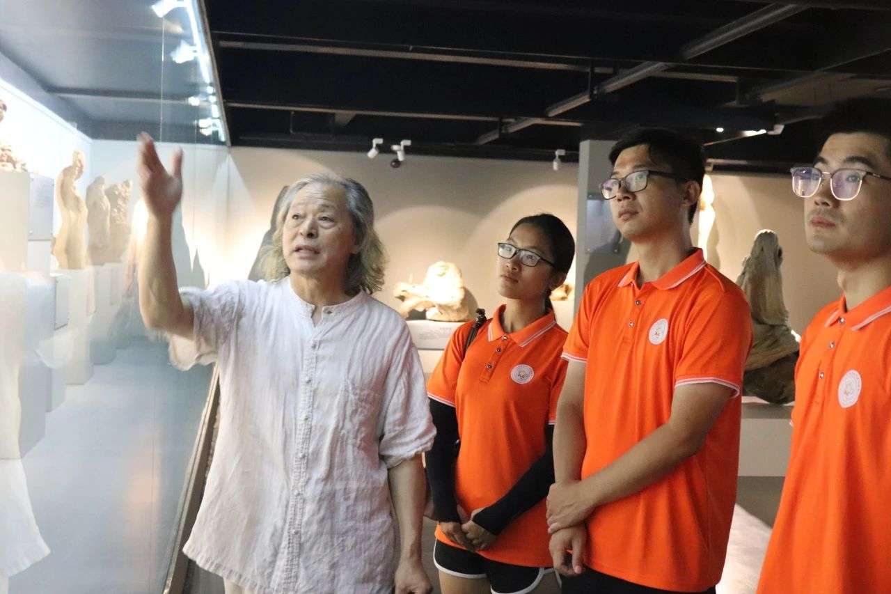 7月10日上午,實踐團成員來到象山縣德和根藝美術館。走進展廳,實踐團成員看到了一件件形態各異、栩栩如生的竹根雕與木雕作品錯落有致地擺放著。館內的每一件都承載著匠人的心血與故事。在近距離感受竹根雕與木雕藝術的獨特魅力的同時,大家一起聆聽了張德和大師對于藝術創作的深刻見解與感悟。