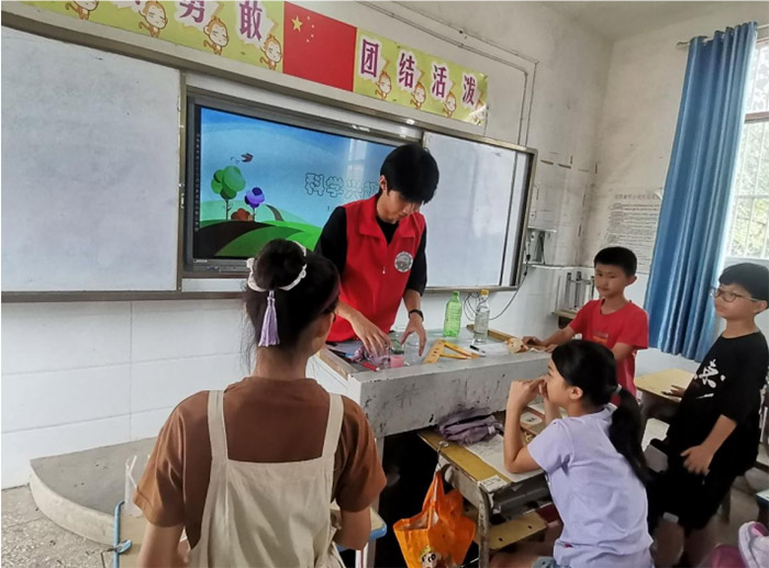 科學啟航之旅:實驗點燃知識火花 科學實驗課上,支教老師以“探索酸堿奧秘”為主題,向學生講授酸堿的基礎知識,引導學生通過實際操作將理論知識內化于心。在支教老師的耐心指導下,學生深切感受到科學之美,展現出尋求新知的渴望。