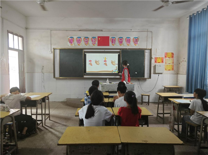 音樂律動之旅:節奏激蕩心靈之弦 音樂節奏體驗課上,學生仿佛進入了一個充滿魔力的旋律世界。在支教老師的指導下,學生或是富有節奏地敲擊非洲鼓,或是輕輕搖動銷鐺,讓原本無形的音樂節奏變得生動可感。這堂音樂節奏體驗課讓學生感知和理解到了音樂的魅力,激發了他們對音樂無盡的熱愛和創造力,使音樂成為連接心靈、釋放感情的橋梁。