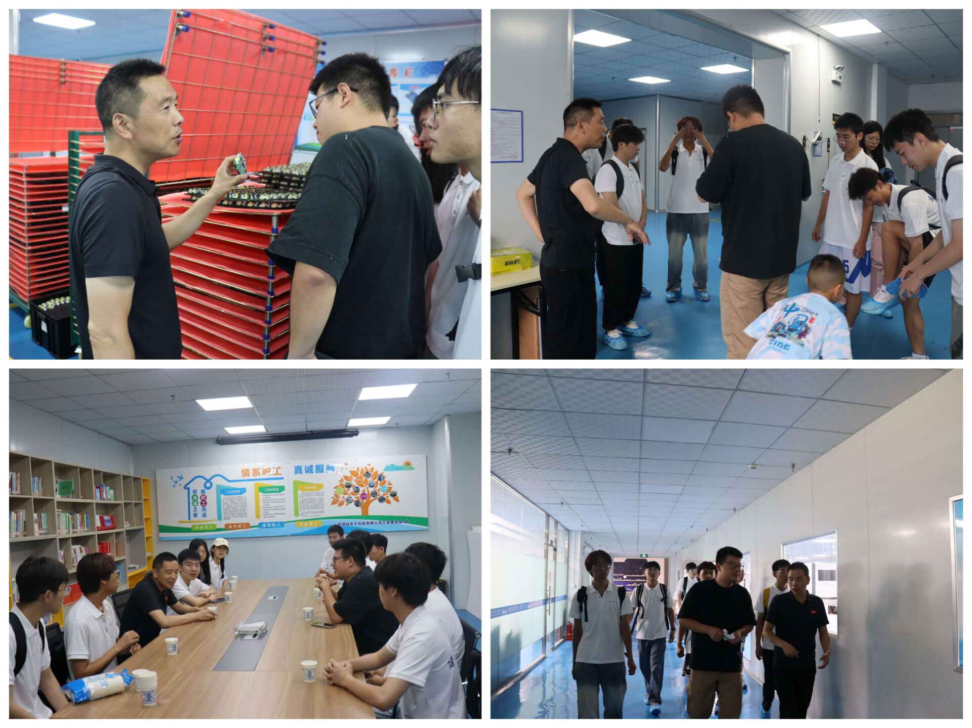 7月13日上午實踐隊來到瑞裕電子科技有限公司,調研電子信息產業發展。在生產車間里看到一個個5G電源適配器被打包裝箱,瑞裕電子孫經理介紹,公司每天最多可生產5萬只適配器,每年創收接近3000萬美元,像這樣的企業在產業園中還有很多。山陽目前有10萬勞動力常年在外打工,其中1.16萬人是電子信息產業工人。山陽依托自身人力資源優勢,瞄準制造業西移風口,將勞動力資源優勢轉化為發展優勢,實現新興產業和技工資源的“適配”。