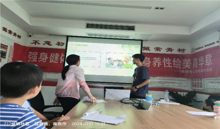 首夏猶清和,芳草亦未歇。2024年7月17日,南京師范大學公共管理學院新葉青協攜手南京市棲霞區仙鶴社區,成功舉辦了一場以“體韻繪夢,美律潤心”為主題的志愿活動,為社區的小朋友帶來了一場融合文學美育與體育精神的活動課程。本日課程由三位來自南師大的志愿者負責講授,以期在知識播撒浸潤中為社區兒童帶來精神和身體的成長。
