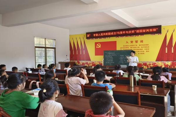 2024年7月25日,武昌理工學(xué)院“青春筑夢(mèng)”通城志愿服務(wù)隊(duì)湖北省咸寧市通城縣五里鎮(zhèn)金塘村的志愿者為小學(xué)生們帶來(lái)了一場(chǎng)別開(kāi)生面的建國(guó)75周年講座。這次活動(dòng)旨在通過(guò)講述國(guó)家的歷史變遷、成就輝煌以及未來(lái)發(fā)展,激發(fā)孩子們對(duì)祖國(guó)的熱愛(ài)之情,培養(yǎng)他們的愛(ài)國(guó)情懷。