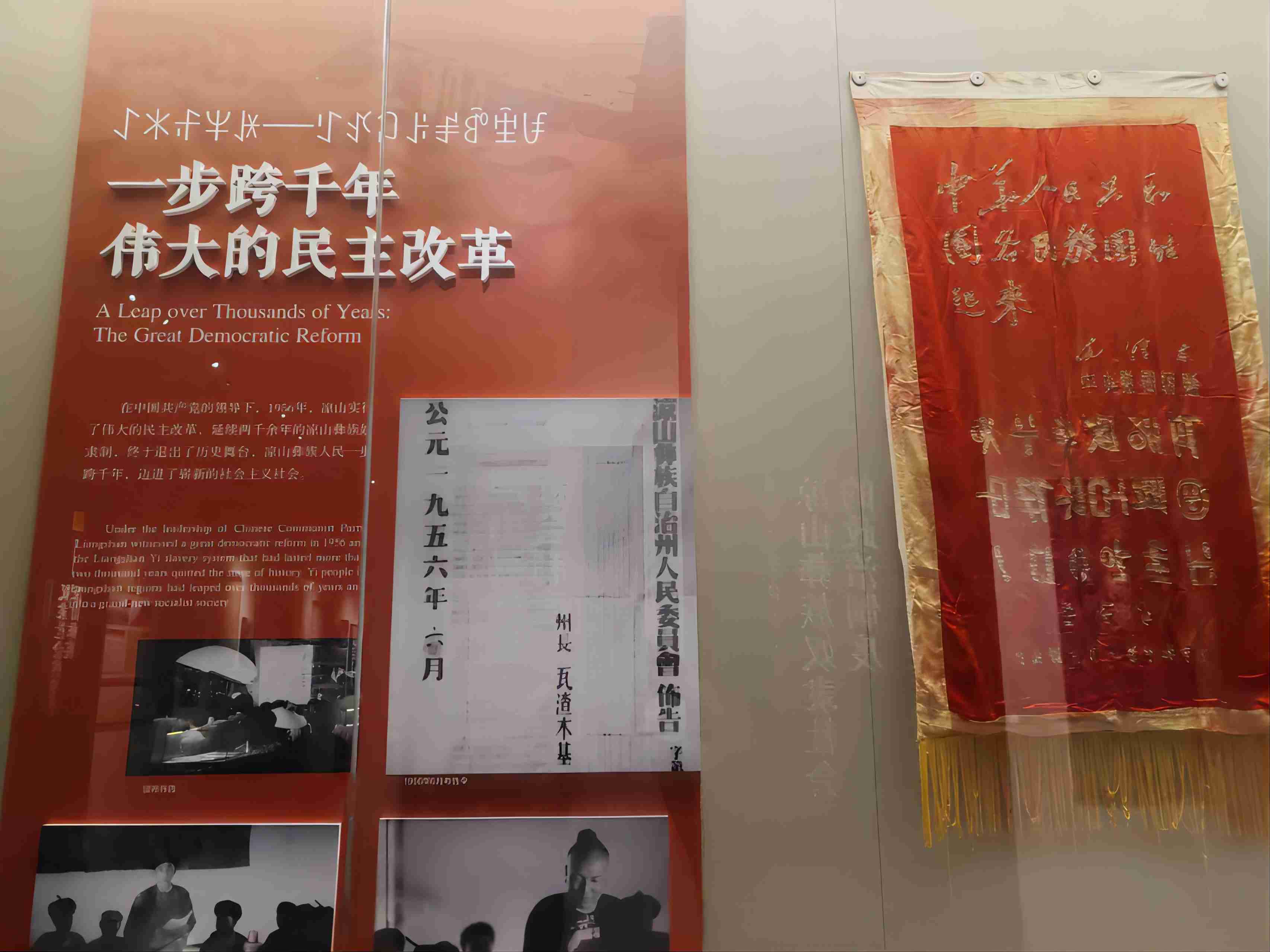 歷史文化的傳承是實現中華民族團結與偉大復興的重要基石。在彝海結盟紀念館中,各類歷史文物、陳舊照片和文字資料展示著那個時代人們的奮斗與犧牲。館藏中陳列了紅軍外出證章、槍支、手雷和大刀;以及紅軍贈送給百姓的銀元、糖果盒和手鐲等。紅軍戰士以“來自人民、為了人民、造福人民”的不變宗旨,為彝漢人民深厚友誼奠定堅實基礎。館內同樣留存有見證了劉伯承與彝族首領小葉丹歃血為盟的“中國夷民紅軍沽雞支隊”隊旗等物,鑄就了民族團結的不朽豐碑。展廳中的每一件展品都生動講述著紅軍與彝族人民相互幫扶、團結進步的故事,向后來者們揭示了民族團結的重要意義,連接起過去和現在的橋梁,鋪墊出新時代民族團結的偉大征途。