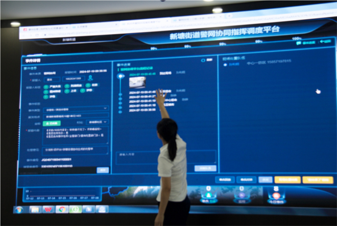 數字化賦能平安浙江建設 為深入探索數字化在平安浙江建設中發揮的作用,調研團來到蕭山所前鎮傳芳村,走進村委會,一塊碩大的數字監控屏映入眼簾。村委會副主任李勁烽介紹道,這是一張由130余個監控組成的安全防護網,已覆蓋全村所有重點部位,由村委會工作人員實時監控,筑牢傳芳村第一道安全防護線。在蕭山臨浦鎮社會治理綜合服務中心,同學們參觀了“共享法庭”,了解了基層矛盾糾紛的數字調解模式,并參與了一起關于贍養糾紛的訴前調解案件,深切感受到了基層工作的不易。在蕭山新塘街道社會治理綜合服務中心,調研團與“新無憂”數字治理系統進行親密接觸,新塘街道通過搭建數字駕駛艙聯動各方力量,實現“30125”式的快速響應與高效處理機制,經過工作人員的詳細講解,調研團深刻體會到了“一網統管”的治理魅力。