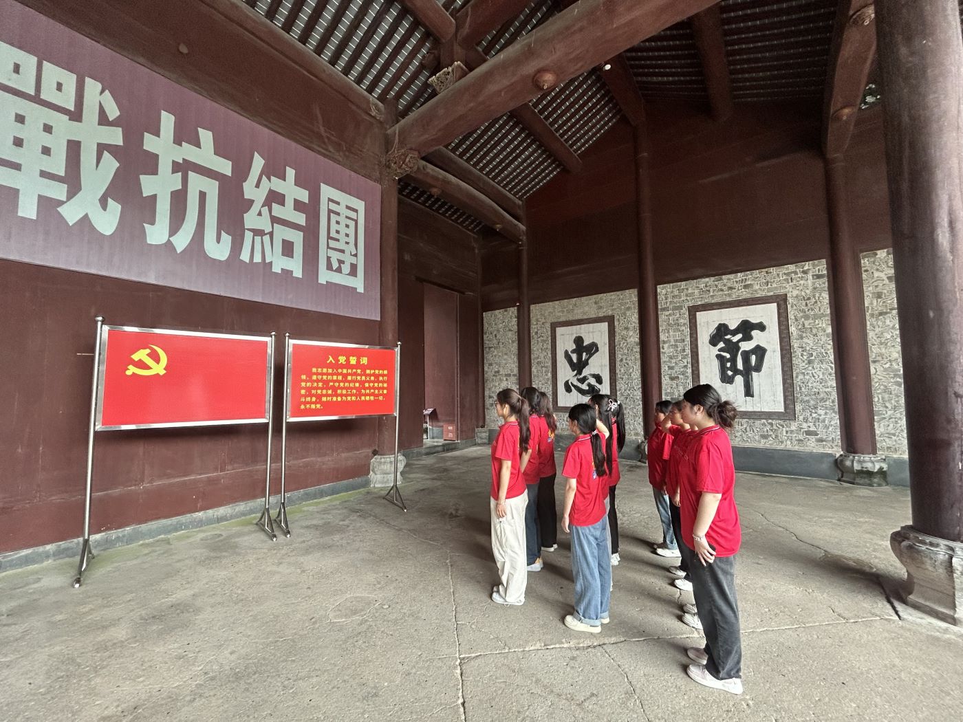 7月11日上午,實踐團隊赴茂林鎮參觀了新四軍軍部舊址紀念館,了解了抗日戰爭期間尤其是皖南事變的歷史沿革。緊跟講解員的步伐,大家前往新四軍舊部大會堂,全體成員崇敬地注視著門前的雕像,在大廳內激情澎湃地宣讀入黨誓詞,立志成為一名光榮的中國共產黨黨員。走進大會堂內,大家深入了解抗日戰爭期間的光輝故事,新四軍偉大精神等。隨后,實踐團隊成員來到石井坑守備戰前線指揮所舊址,大家在指揮所的舊址中感受到戰爭的殘酷,新四軍的堅韌不拔、相忍為國的精神以及如今美好生活的來之不易。同時,實踐團隊成員在紀念館內向工作人員和游客們發放紅色文化傳承主題調研問卷。