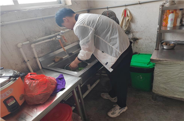 注:圖為實踐團成員閆瑞鵬協助廚師做飯