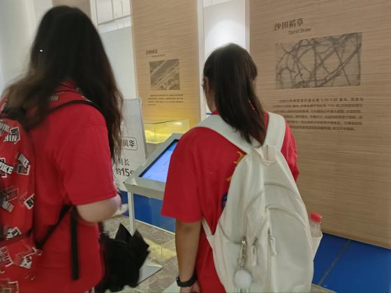 在東方藝術的長河中,宣紙以其獨特的魅力,成為畫家們鐘愛的畫布。走進宣紙文化園的二層與三層,各種由知名畫家在宣紙上的畫作陳列其中,有的生動活潑,有的古樸典雅,有的筆走龍蛇。這些氣韻生動的畫作給人以美的享受,視覺的震撼和心靈的凈化。其中一個場館展示了宣紙的原材料,實踐團隊瀏覽了館中的介紹文字,對宣紙的材料來源和藝術特性等有了更深刻的了解。一些古代文人對于宣紙的評價描述詩文也由竹簡展示在館中,杜甫《奉贈韋左丞丈二十二韻》中寫道:“宣紙如云白,墨色似煙青。”形容宣紙潔白如云,墨色清新如煙。古人的詩詞不僅贊美了宣紙的質地和特性,也體現了他們對書法繪畫藝術的熱愛和追求。實踐團隊也通過詩詞感受到古人對宣紙的珍視和對藝術的崇高敬意。