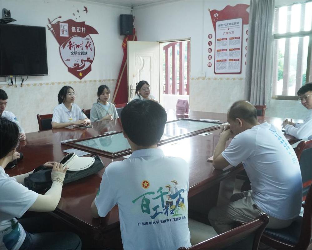 圖為實(shí)踐團(tuán)與低冚村書(shū)記開(kāi)會(huì)探討低冚村的發(fā)展現(xiàn)狀