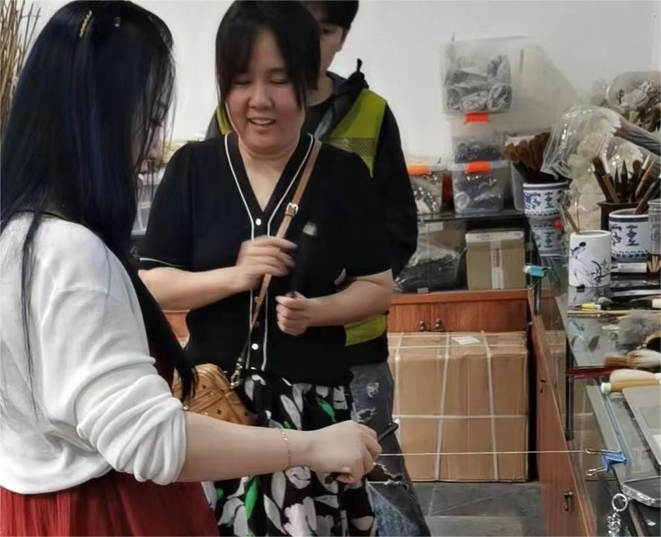 訪談的高潮部分,團(tuán)隊(duì)成員通過視頻,親眼見證了楊文筆莊研學(xué)團(tuán)隊(duì)制作徽筆的全過程。視頻中,匠人們手法嫻熟,從選材、理毛、切毛、裝套、刻字到最后的成品檢驗(yàn),每一步都凝聚著匠人的心血與智慧。這一過程不僅讓團(tuán)隊(duì)成員深刻感受到了傳統(tǒng)文化的魅力,也激發(fā)了他們對(duì)保護(hù)和傳承非物質(zhì)文化遺產(chǎn)的責(zé)任感與使命感。