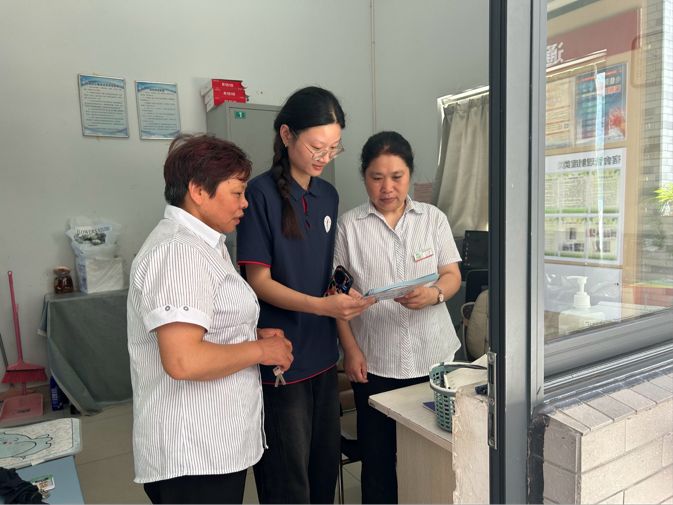 圖為團(tuán)隊(duì)成員向宿管阿姨宣傳關(guān)于全國(guó)第五次經(jīng)濟(jì)普查。通訊員 張?jiān)娬Z(yǔ) 攝