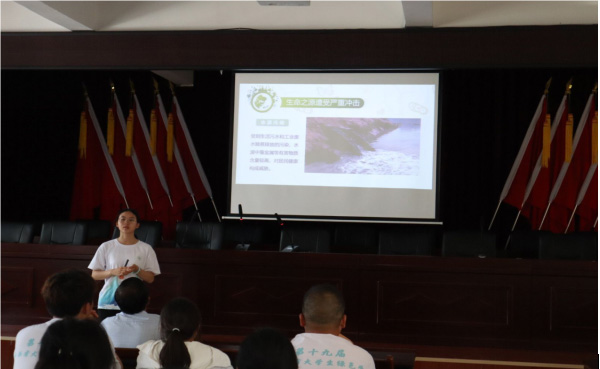 麻田沃土播綠種,低碳知識潤民心 綠色營隊員于下午在麻田鎮人民政府進行“低碳節能”的宣講。宣講會上,村民們認真聽講,踴躍發言。隊員采用圖文并茂的形式,講述了工廠排放濃煙、燃燒桔梗等不良行為后,在關于如何低碳生活以及低碳生活的方式中,村民講述了自己的生活經驗并提出了新的理解。在隊員同村民交流講解后,村民們也理解了節約用水、綠色出行,要將低碳生活貫徹到底的道理。