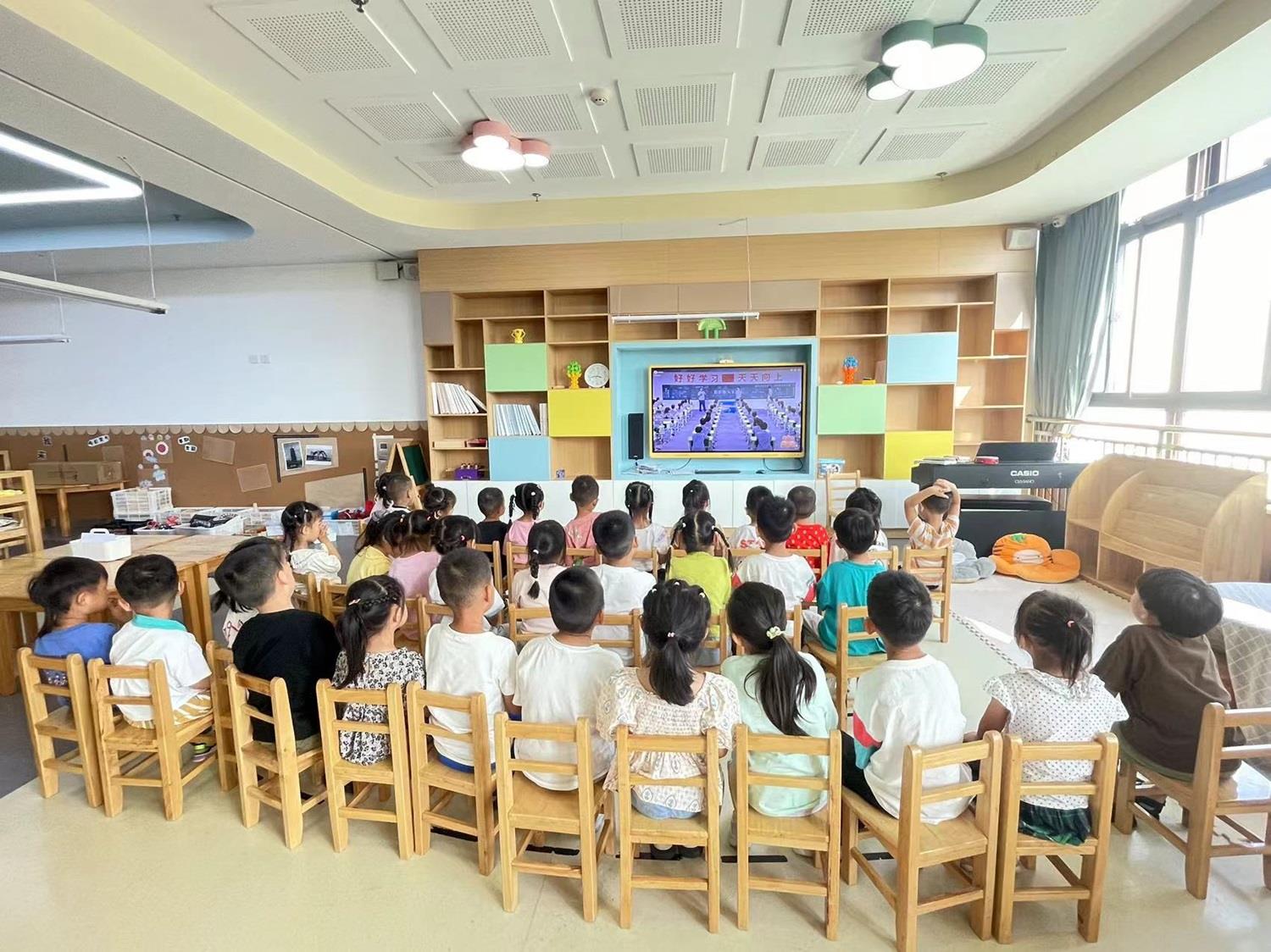 圖為小朋友們在認真聽垃圾分類的視頻講解 通訊員 翟涵悅 攝