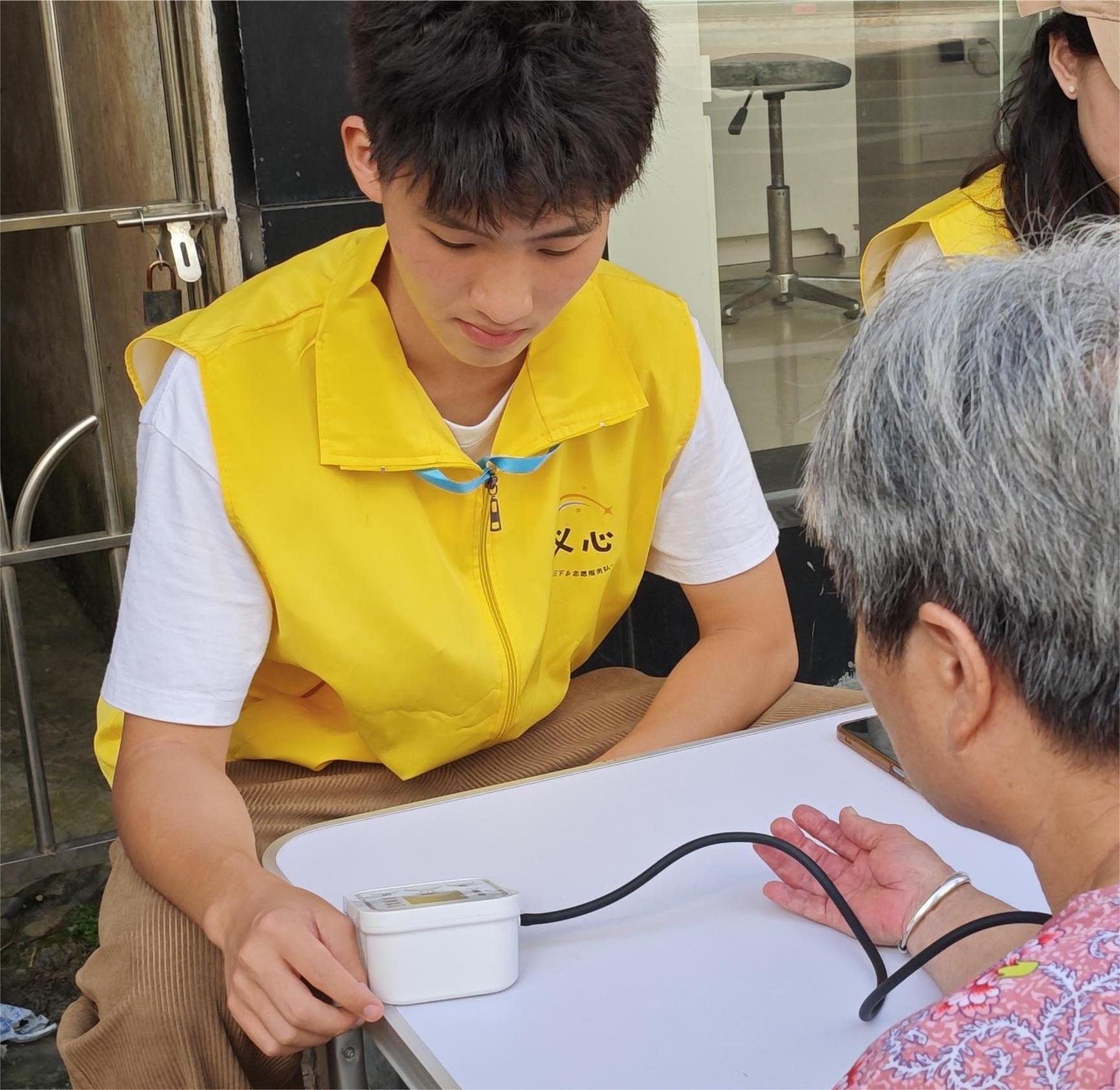 圖為陳欣彤為老人量血壓的現場 后勤部部員蔡穎珊也向我們分享了她的深刻感受。七月的盛夏,萬物繁茂,她滿懷榮幸地作為義心服務隊的一員來到梅州五華縣周江鎮。這次活動讓她走出校園,深入鄉村,切實體驗到了農村醫療的發展現狀。她深知,只有真正了解群眾的需求和期盼,才能為他們辦實事,推動鄉村醫療的進步,實現“三下鄉”的真正意義。志同道合的伙伴們給予了她強大的力量支持,大家一起熱情義診,認真做問卷調查,耐心科普醫療知識,共同下廚做飯。在這個過程中,不僅鍛煉了實踐能力和團隊協作能力,更讓她深刻認識到作為大學生在鄉村振興中的責任和使命。“三下鄉”的實踐如一場意義深遠的遠足,在她的人生中留下了濃墨重彩的一筆。