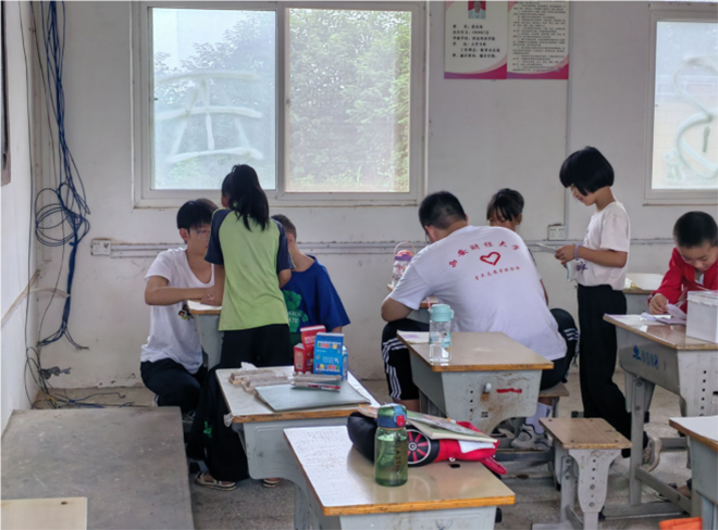 陪伴成長,關愛心靈 除了知識的傳授,五愛護渭隊志愿者們還注重孩子們的心靈成長。每天下午的兩節輔導課,他們耐心輔導孩子們完成暑假作業,解答疑惑;課余時間,則與孩子們聊天、做游戲,傾聽他們的心聲,關注他們的心理健康。在志愿者的陪伴下,孩子們不僅收獲了知識,更感受到了溫暖與關愛。