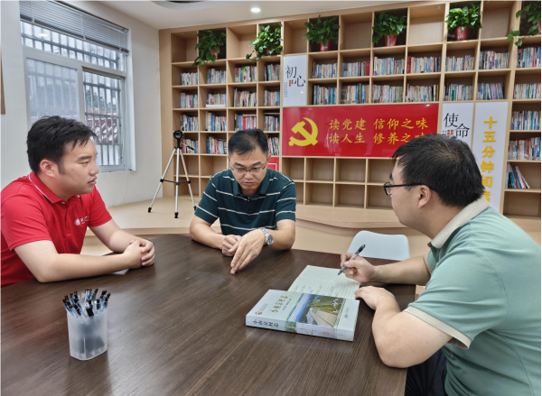 小南京村黨委書記衛(wèi)龍海與團隊成員交流座談(圖/楊錦波)