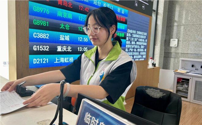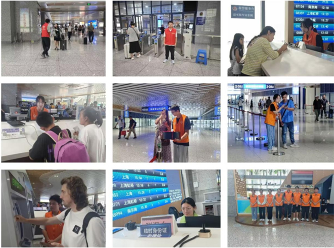 志愿服務(wù)期間,張家港高鐵站人頭攢動,來自四面八方的旅客絡(luò)繹不絕。此時,一群身著統(tǒng)一志愿者服裝的大學生志愿者們格外引人注目。他們身著志愿者馬甲,臉上洋溢著熱情的笑容,成為了高鐵站內(nèi)一道亮麗的風景線。