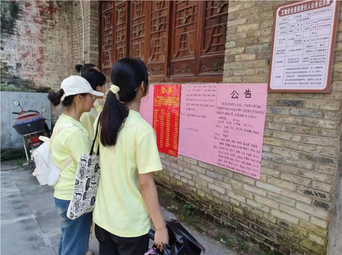 圖為實踐隊員參觀大圩古鎮光明街龍舟籌集錢的用途公告。通訊員 胡一茗 供圖