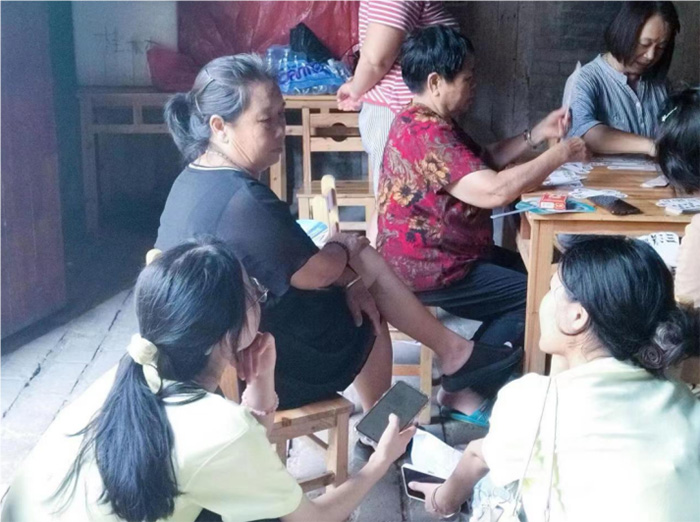 圖為實踐隊員與光明街的老人交談,了解大圩古鎮劃龍舟等民俗文化的傳統和現狀以及宣傳情況。通訊員 胡一茗 供圖