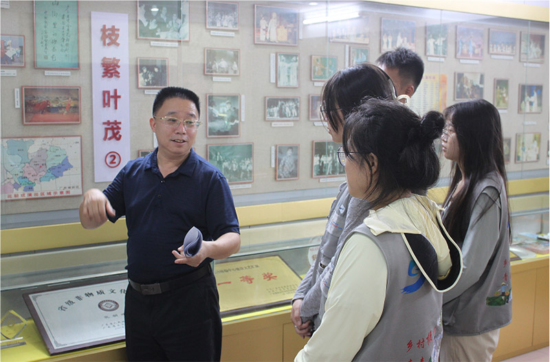 10日上午,突擊隊前往河源市紫金縣花朝戲傳承發展中心,與戲曲演員交流學習花朝戲。在調研學習中,突擊隊了解到花朝戲主要是由神朝腔和民間小調構成,用客家方言演唱。隊員們紛紛被精彩的戲曲所吸引,在學習過程中激發了隊員們的文化認同感和文化傳承的使命感。10日下午,突擊隊隊員們來到了紫金縣博物館參觀學習。在這里,隊員們領略著紫金縣深厚的文化底蘊,感受著傳統文化的獨特魅力。通過本次調研學習,突擊隊隊員們認識到傳承與弘揚非遺文化對激發當地文化產業活力的重要性。通過充分挖掘和傳承鄉村非遺文化,并將其與鄉村建設緊密結合,才能進一步拓展鄉村文化內涵,從而助推鄉村振興。