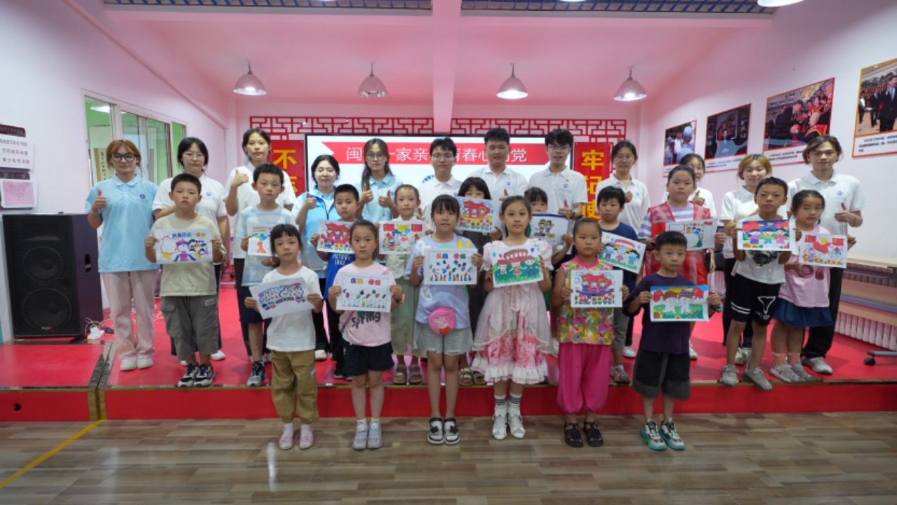 圖為三下鄉隊員們教孩子在民族團結繪本上涂畫。福建醫科大學基礎醫學院肖雅、楊翠玥供圖。