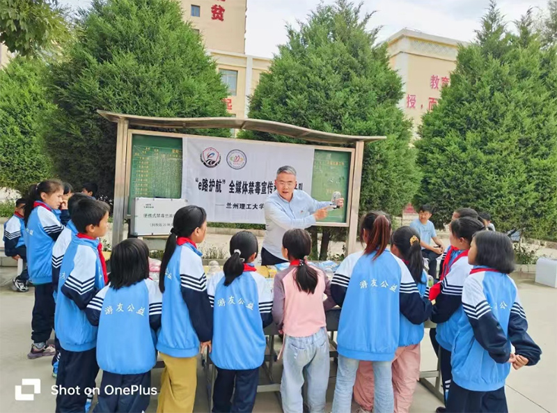 蘭州理⼯⼤學計算機與通信學院黨委副書記來明展、團委書記張國勇及志愿者服務隊協同當地學校校⻓、政府領導幫助當地中⼩學⽣普及禁毒知識,帶⼤家了解了各種毒品的危害,來源等。