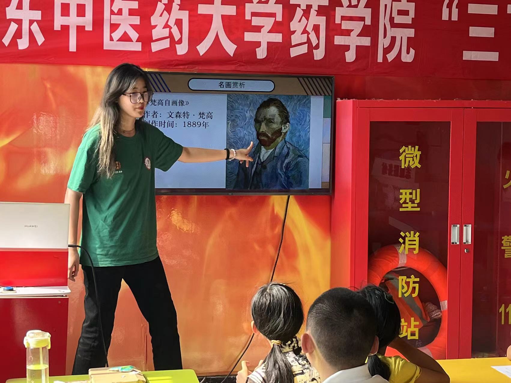 實踐隊隊員帶領孩子們賞析世界名畫。攝影:寧家羽