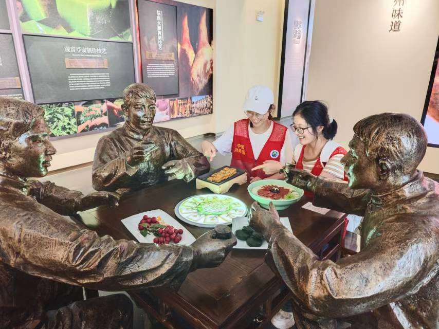 圖為服務(wù)隊(duì)成員觀賞徽菜。(通訊員武洋 攝)