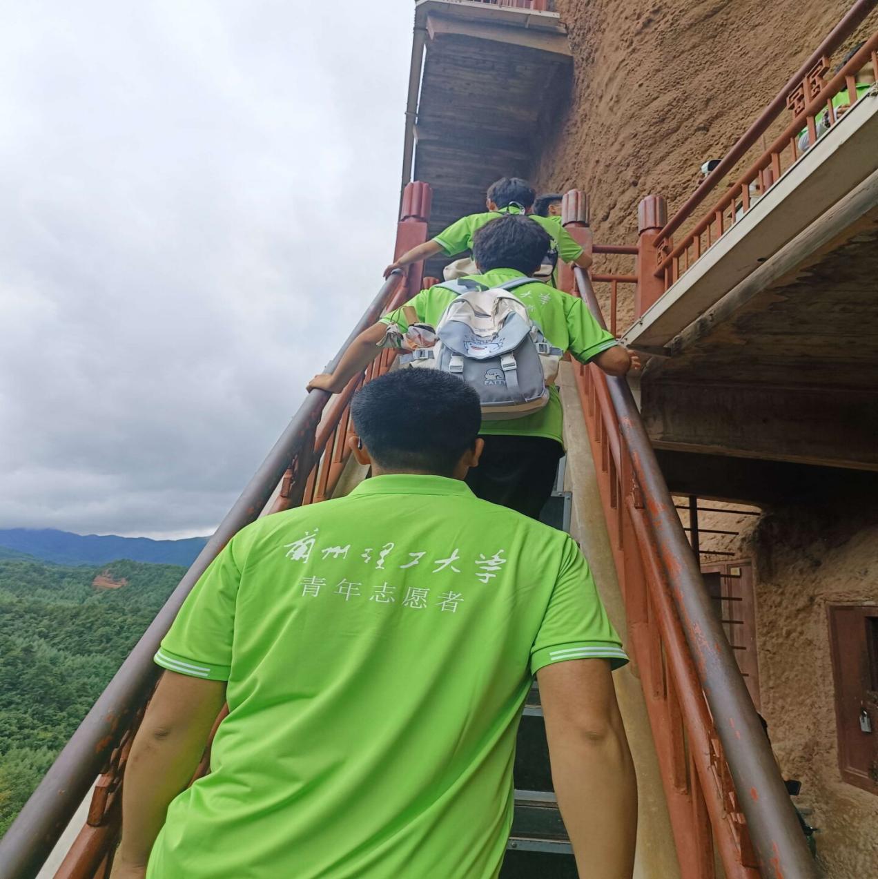 圖為實踐團成員沿麥積山石窟階梯拾級而上。 多彩大學生網通訊員 李雄 供圖