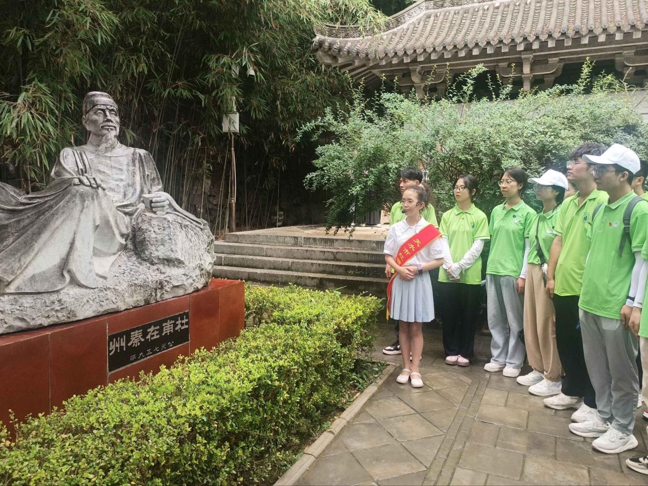 隨后,實踐團前往南郭寺,感受其文化瑰寶的魅力。在紅領巾講解員的介紹下,成員們了解到南郭寺是隴右名剎,唐代時已頗具規模,寺內有眾多建筑名勝和“唐槐漢柏”。杜甫的詩《山頭南郭寺》描繪了其美景,引發了人們的游覽興致。實踐團成員跟隨講解員的步伐,體悟詩中意境,了解杜甫在秦州的故事,深感這里是自然與人文相得益彰的勝景,也是承載千年歷史和文化沉淀的精神家園。