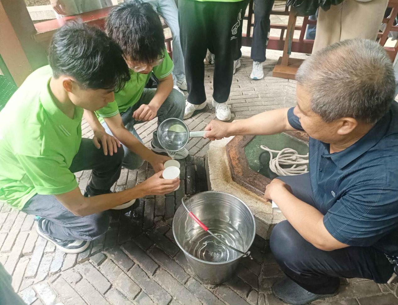 圖為實踐團成員品嘗北流泉泉水。 多彩大學生網通訊員 李雄 供圖