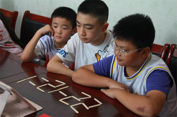 02啟迪智慧:手腦思維培訓(xùn) 在《義務(wù)教育數(shù)學(xué)課程標(biāo)準(zhǔn)(2022年版)》核心素養(yǎng)導(dǎo)向下,“愛(ài)數(shù)童行”團(tuán)隊(duì)在嘉明鎮(zhèn)秀水社區(qū)與羅橋村為留守兒童精心策劃了手腦思維培訓(xùn)活動(dòng),正是對(duì)“會(huì)用數(shù)學(xué)的眼光觀察現(xiàn)實(shí)世界、會(huì)用數(shù)學(xué)的思維思考現(xiàn)實(shí)世界、會(huì)用數(shù)學(xué)的語(yǔ)言表達(dá)現(xiàn)實(shí)世界”這一理念的生動(dòng)實(shí)踐。活動(dòng)以“啟迪智慧,溫暖童心”為目標(biāo),通過(guò)火柴謎題、七巧板、數(shù)字卡牌等互動(dòng),激發(fā)孩子對(duì)數(shù)學(xué)的興趣。