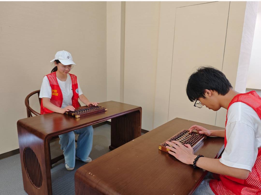 隨后,實踐團一行來到了珠算文化展區。珠算,這一古老的計算工具,在現代電子產品的沖擊下,或許已逐漸淡出人們的視野,但其背后所蘊含的智慧與思維方式卻仍具有不可替代的價值。學生們在這里親身體驗了珠算的魅力,通過簡單的操作與計算,感受到了古人對數學的獨特理解與運用。珠算文化的學習,不僅讓學生們領略到了中國傳統文化的智慧之光,更激發了他們探索未知、勇于創新的熱情。