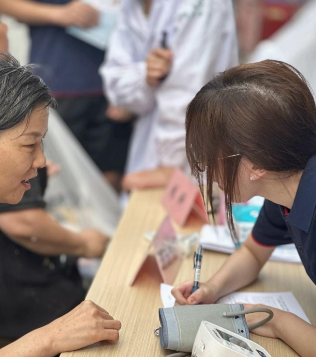 圖為實踐成員參與量血壓志愿醫(yī)療服務(wù)。中國青年網(wǎng)通訊員 艾韻靈 供圖