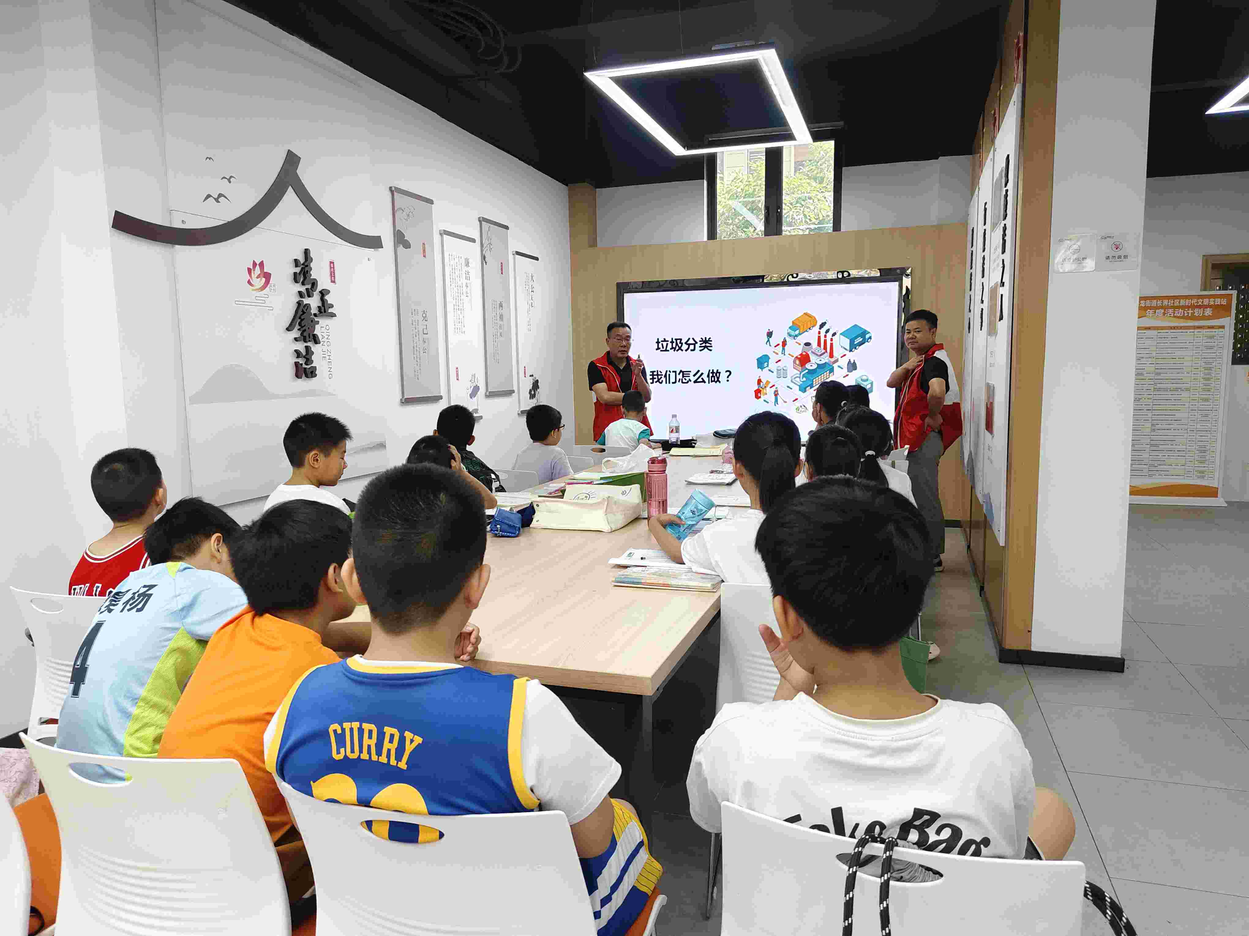 在活動開展中,實踐隊員采用了幻燈片放映和趣味知識搶答的方式帶領孩子們走入垃圾分類知識的海洋。演示動畫圍繞什么是垃圾、垃圾處理的現(xiàn)狀、垃圾是錯放的資源和如何進行垃圾分類開展主題。實踐隊員繪聲繪色的講解配合演示動畫詳盡的內(nèi)容,孩子們沉浸其中、認真聽講。并且多數(shù)孩子都對垃圾分類有著自身的感悟和理解,勇于發(fā)言,向?qū)嵺`隊員提出針對問題。