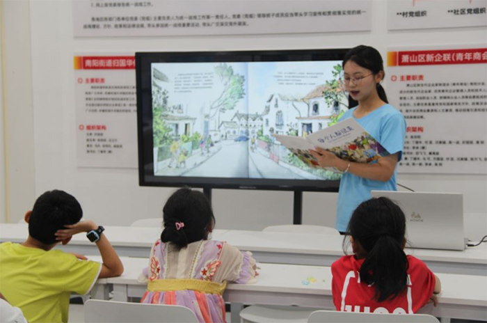 圖為實踐團(tuán)成員在分享繪本 浙商大供圖