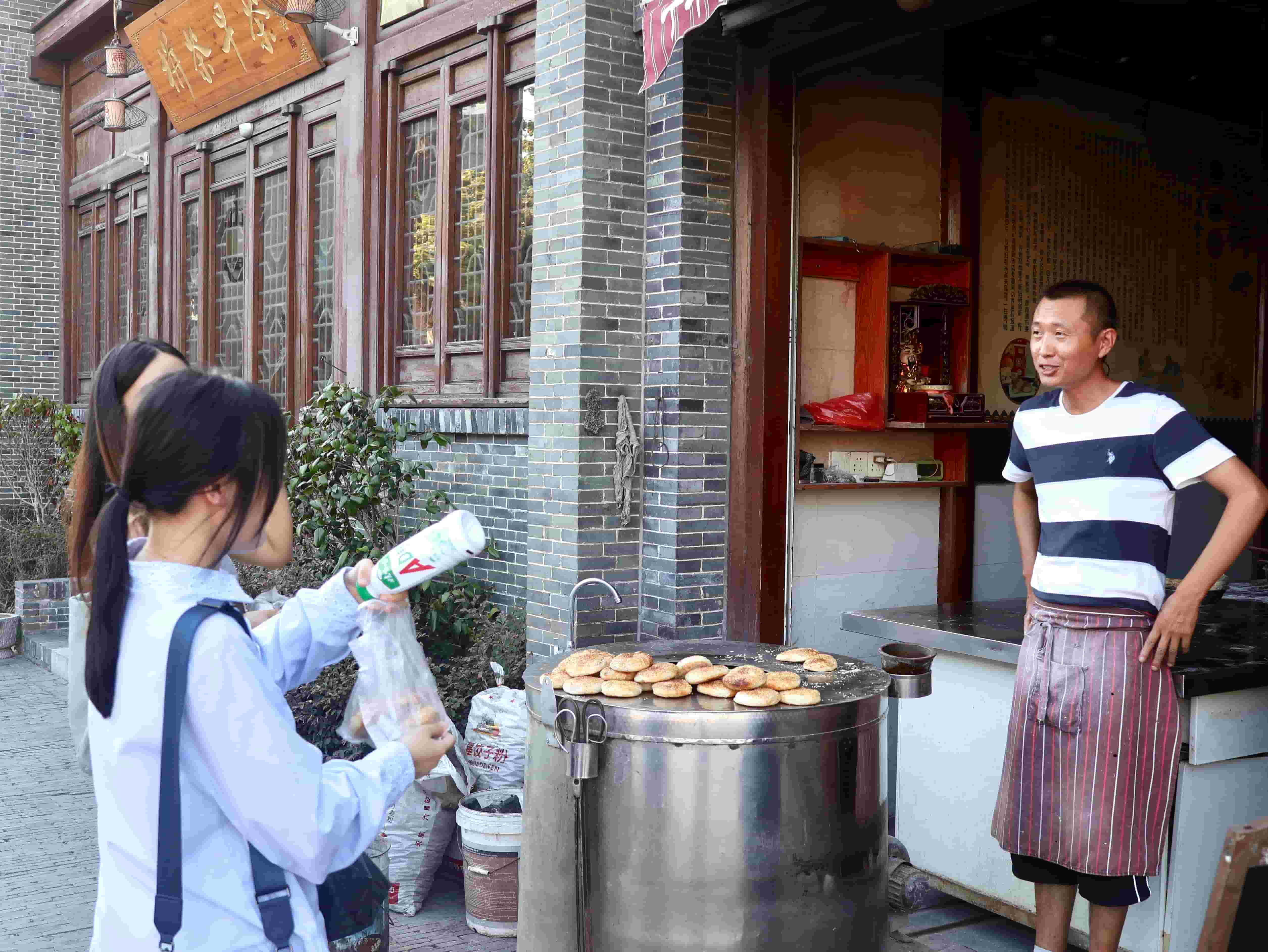 此外,團隊通過采訪一柱樓燒餅傳承人朱軍軍師傅了解到栟茶古鎮將傳統手藝搬遷至旅游景點時也會帶來一些問題例如老顧客流失、人流量時間分布不均衡致使收入隨時間變化較大等。在走訪過程中,團隊還發現古鎮內的部分商鋪是由本地居民家中年輕一輩安置而由老一輩照看和打理,采訪后了解到在古鎮的管理下本地家庭可以在不增加負擔的同時提高收入。