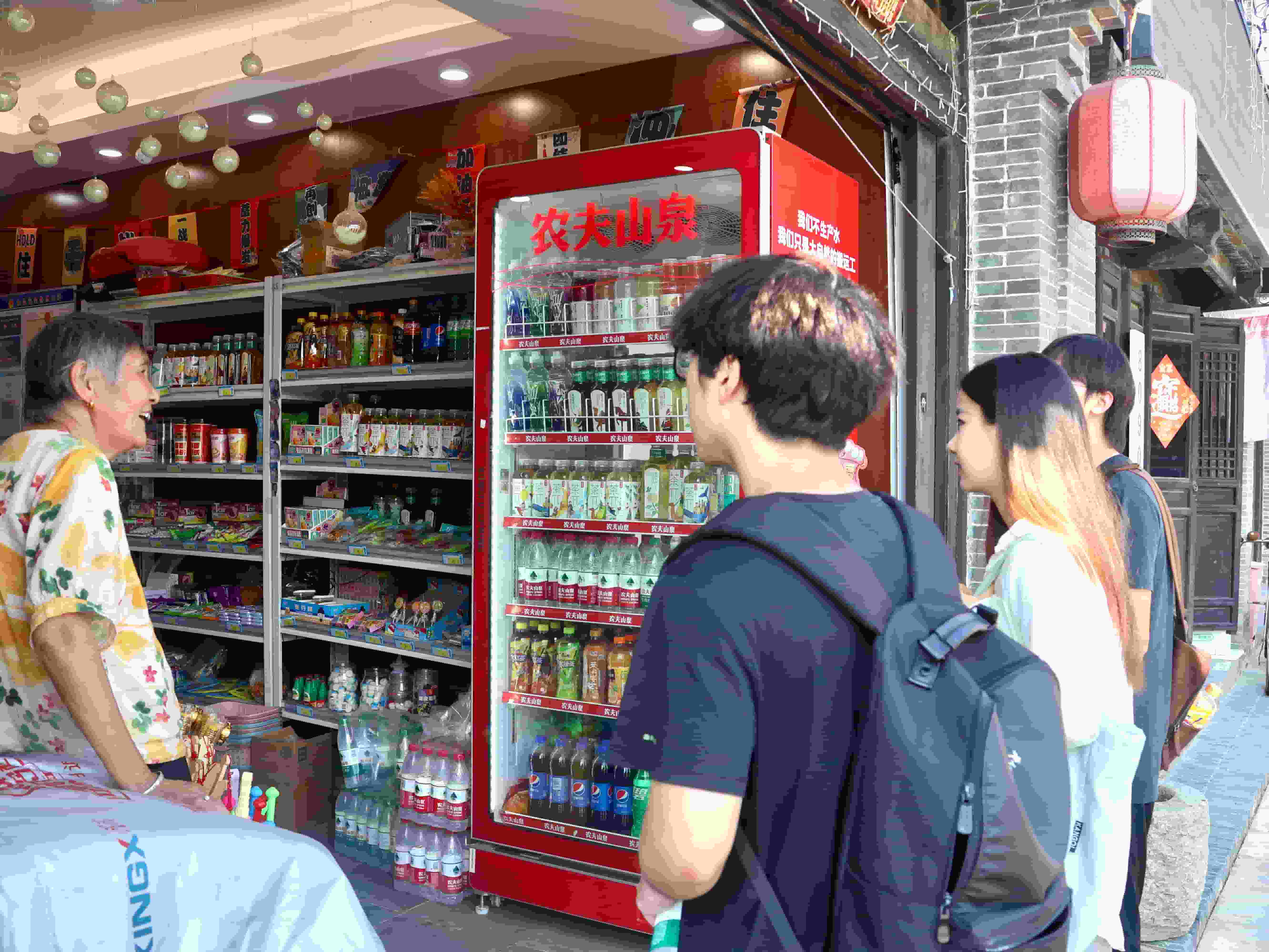 圖為團隊采訪獨自照看店鋪的老人 單雨欣攝