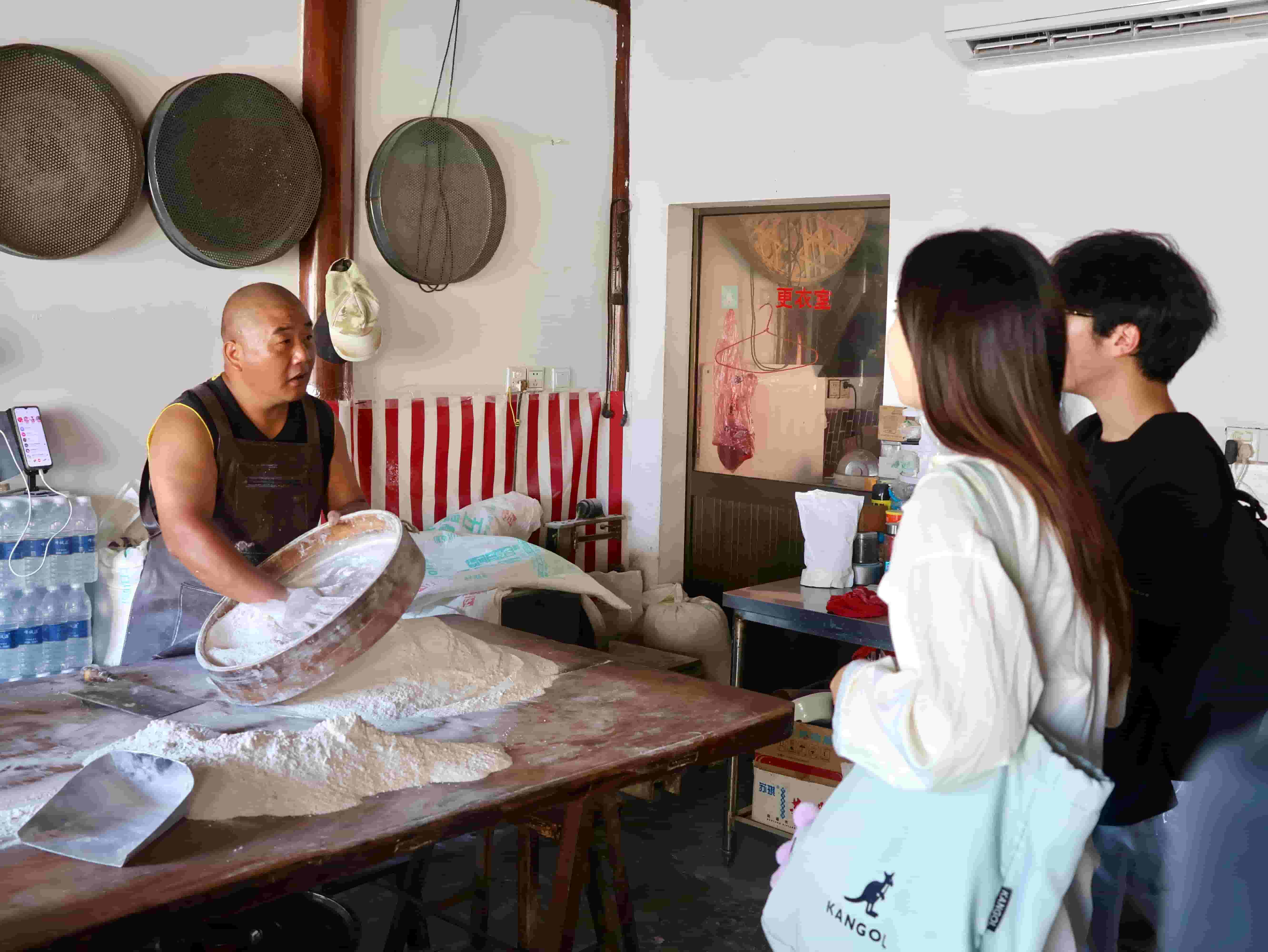 圖為團隊采訪傳統糕點傳承人學習古鎮對傳統手藝的影響 單雨欣攝