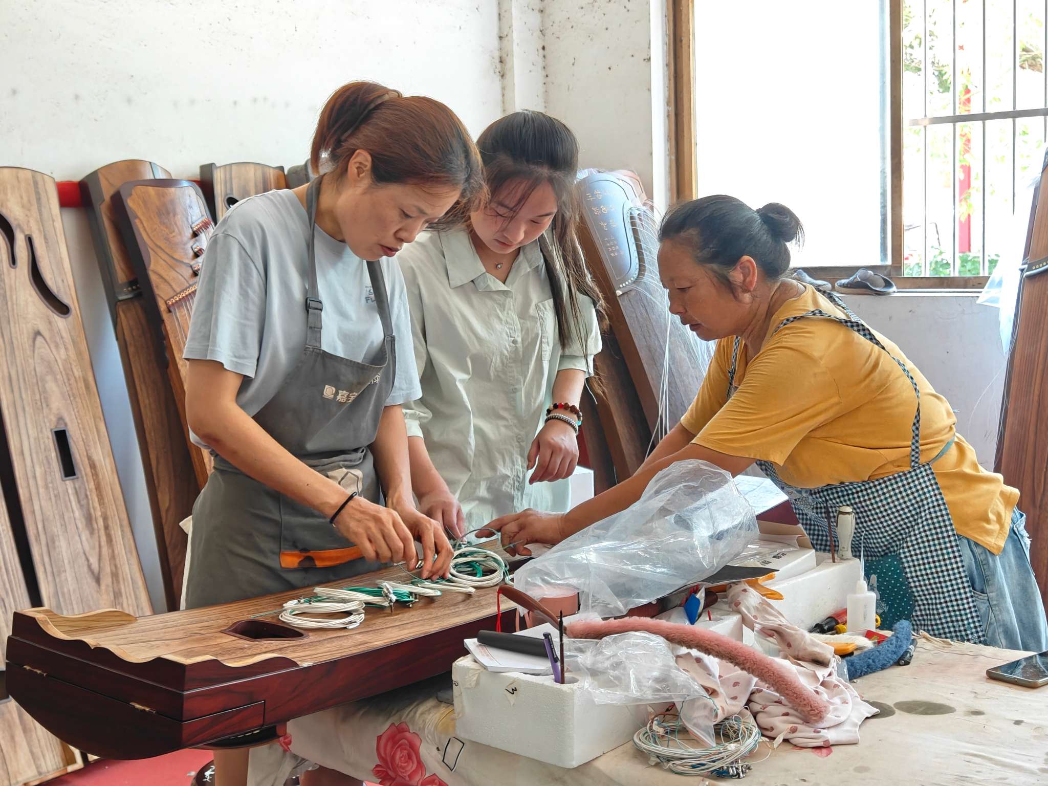 圖 3為志愿隊成員體驗古箏制作 “拾遺·SHIY”志愿隊成員攝