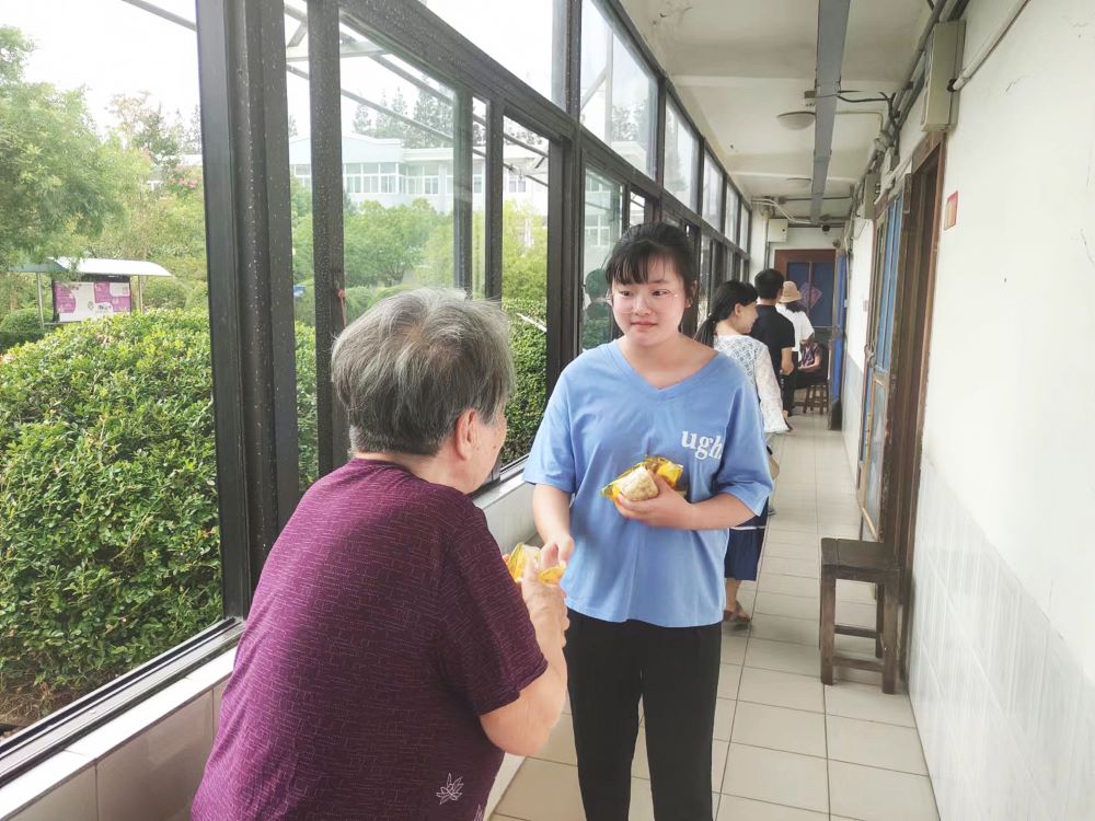 參觀完食堂,成員們依次敲了幾個老人的房門,在征得許可后依次進入房間遞上慰問禮物。老人們對家鄉年輕人的到來很是歡迎,熱絡地拉著實踐團的成員聊了好一會,鄉音回蕩,笑聲不斷。針對問卷內容,成員們以老人可以理解的方式問詢,順利地完成了問卷的實地調研。可以直觀地看到,每個老人的房間都很干凈整潔,而且雖然外面驕陽似火,房間內部卻因配備有空調和風扇一點也感覺不到炎熱。