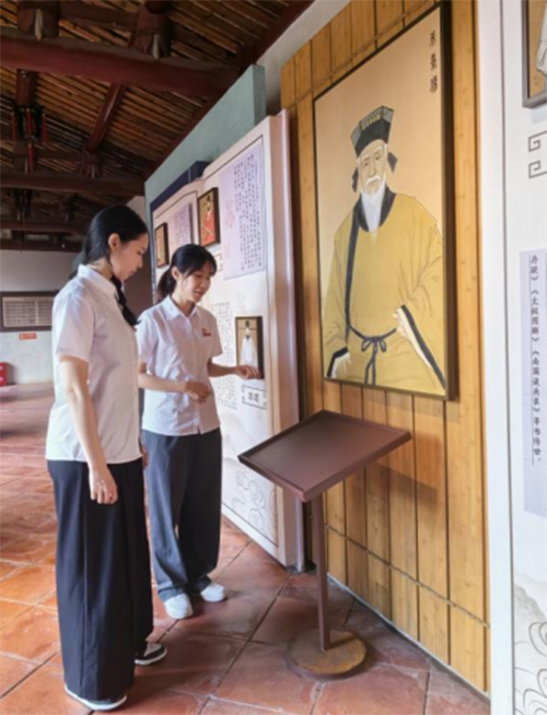 圖為實(shí)踐隊(duì)員們學(xué)習(xí)朱熹事跡