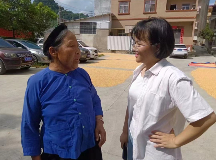 圖為實踐團隊成員采訪當地居民,了解當地的普通話推廣情況。通訊員 胡一茗 供圖